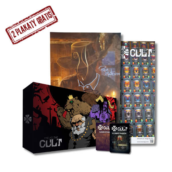 Promocyjny zestaw, w skład którego wchodzi podstawowa wersja strategicznej gry karcianej M.E.A.T.: The Cult, 2 dodatki i znalezione w magazynie archiwalne plakaty z odręcznymi autografami (a niekiedy i rysunkami!) Słonia i Pana Mateusza.